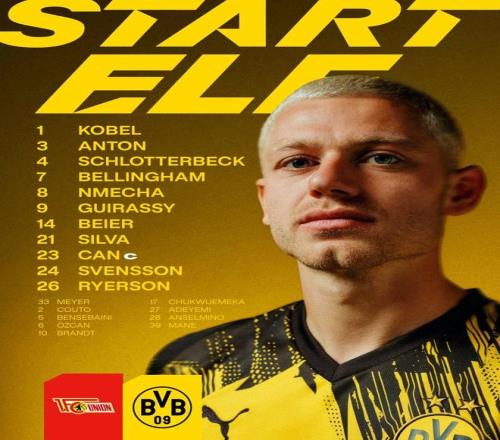 多特蒙德首發(fā):1-科貝爾、4-施洛特貝克、3-安東、24-丹尼爾-斯文松、23-埃姆雷-詹、14-拜爾、8-費(fèi)利克斯-恩梅加、7-喬布-貝林厄姆、26-瑞爾森、21-法比奧-席爾瓦、9-吉拉西